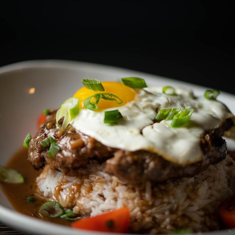1/2 lb house-made beef patty, white rice, house-made brown gravy, sunny side up egg, green onion