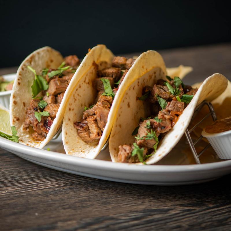 3 pieces | Served on corn or flour tortillas with chips, guacamole, and salsa